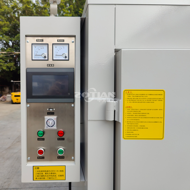 380V,三相四線制,加熱功率 9KW,配控制電箱于烤箱頂部,采用優(yōu)怡觸摸屏控制器,配有 PV 和 SV 數(shù)字顯示窗口。提供 USB 接口:可記錄運行中溫度值,可下載各種測試參數(shù)信息。采用SSR 固態(tài)繼電器控制加熱器,顛覆傳統(tǒng)過零觸發(fā)時帶來的電流瞬間沖擊大、控溫波動大等影響,配合性價比極高的 DC24V 輸出型控制器,可使輸出電壓平穩(wěn)線性變化,控溫效果更穩(wěn)定,性能更穩(wěn)定,使溫度更加精準(zhǔn),溫度由室溫+10℃-400℃可調(diào)。功能有 PID 自整定微積分控制、使溫度更加精準(zhǔn),控溫精度±0.5℃,內(nèi)部溫度均勻性±3℃(空載測試)。自動恒溫、自動計時(配有高精度數(shù)顯計時器可調(diào) 99 小時 99 分鐘)溫度到后定時報警斷加熱、超溫報警斷加熱、電源缺相相序保護(hù)等功能,及其它正牌電器控。